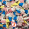 Glucose syrup, Sugar, Gelatine (Beef & Pork), 6% Juice from concentrate (Grape, Pear, Pineapple, Peach), Acid (Citric acid), Gelling agent (Pectins), Flavourings, Vegetable oils (Palm), Glazing agents (Carnauba wax, Beeswax), Fruit and Vegetable Concentrates (Radish, Blackcurrant, Carrot), Colours (E100, E133, E160c).