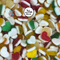 Glucose syrup, sugar, fruit juice from concentrates: grape, pear, pineapple, peach; pork and beef gelatine; humectant: sorbitols; corn starch, acid: citric acid; gelling agent: pectin; fruit and vegetable concentrates: safflower, spirulina, carrot; flavouring, vegetable oils: coconut, palm kernel; glazing agents: beeswax, carnauba wax.