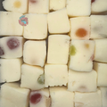 Sugar, Glucose Syrup, Tutti Fruity Pieces (glucose syrup, Sugar, Water, Cornflour, Modified Potato Starch, Flavourings, Acid (citric acid) Colours (Anthocyannis, Chlorophylls, Paprika Extract, Circumin) Plant Concentrates (Safflower, Spirulina) Peanuts, Egg, Albumen, Flavours.